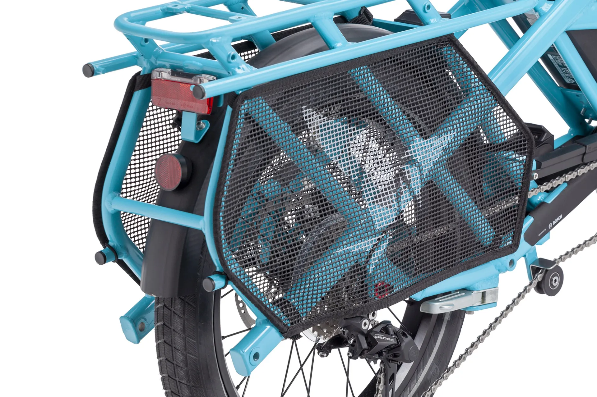Le Sidekick Wheel Guard est une paire de protections en filet conçue pour sécuriser les pieds des jeunes passagers à l’arrière du GSD Gen 1, qu’ils soient assis sur le Sidekick Seat Pad ou dans un siège enfant dépourvu de repose-pieds avec protection. Sa conception évite aussi que des lacets, manteaux ou jupes ne se coincent dans la roue arrière, offrant ainsi plus de confort et de sécurité lors de chaque trajet.